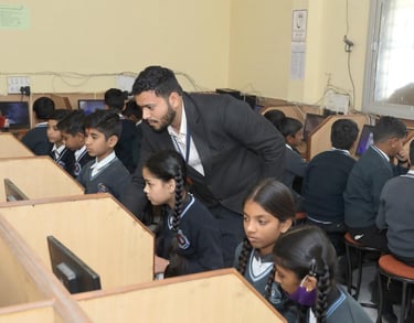 Our School is equipped with an advanced computer lab and competent teachers to train the students in the latest software medium and keep them updated with the latest computing skills. The lab also has a multimedia projection system which is used as a visual aid while teaching basic concepts of flash, C++ etc. During every class, each child has a dedicated system for their use.